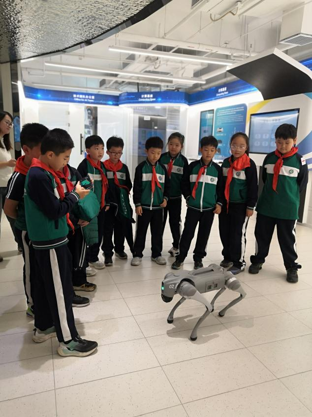 活动伊始,讲解员带领孩子们梳理人工智能发展脉络,详解三次崛起的关键节点,帮助大家建立对AI的基础认知。互动环节中,仿生机器人、机器狗“笨笨”引发阵阵欢呼,孩子们近距离观察、互动玩耍,让抽象的科技变得可触可感。