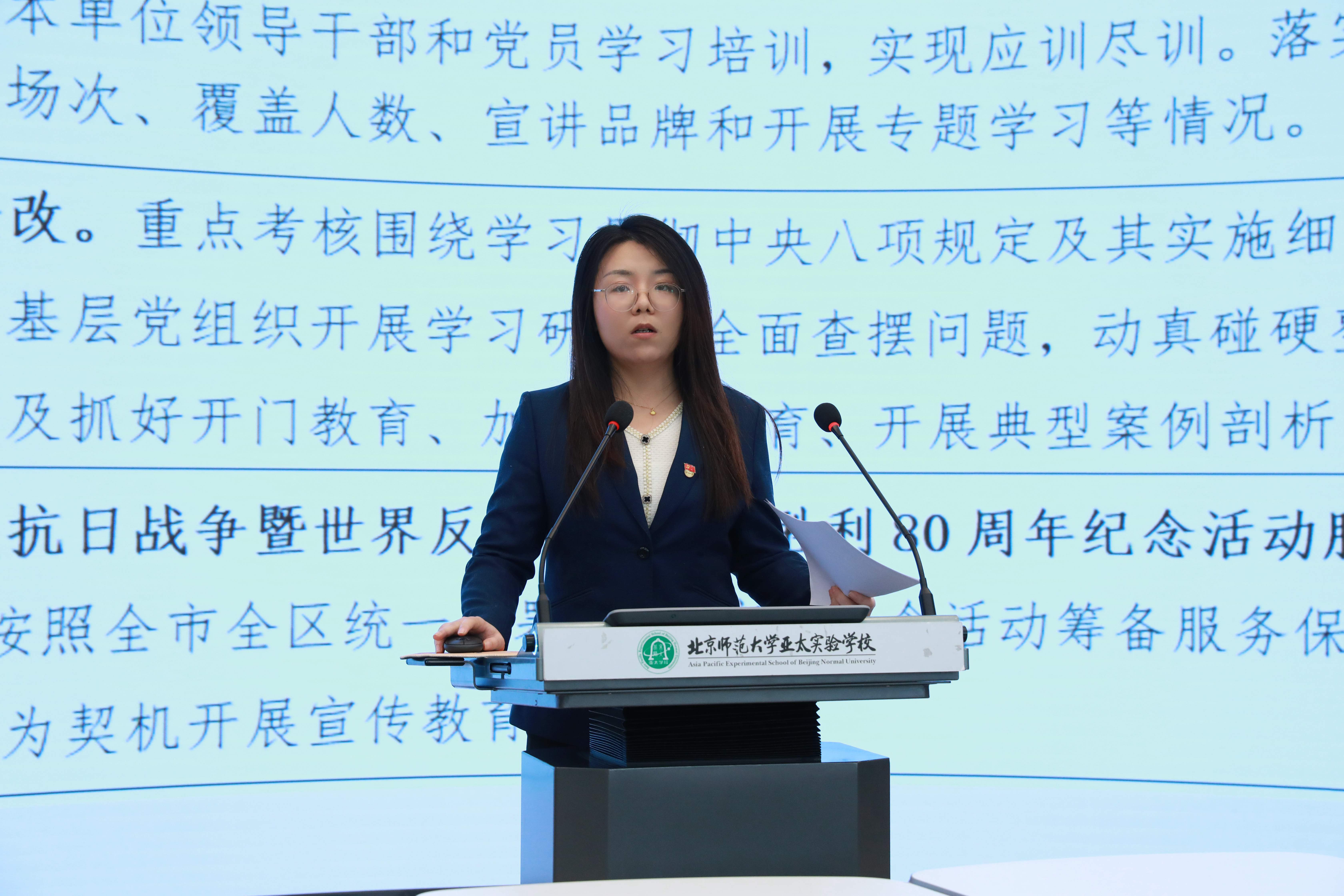 会议由七位党员代表依次发言,围绕党建与教育教学深度融合、党纪学习教育、思政教育创新、学校“十五五”规划建议等议题展开深入交流,旨在凝聚共识,明确方向。中共北京师范大学亚太实验学校党委书记徐向东同志出席会议并作总结讲话,各支部书记及在校党员教师参加会议。