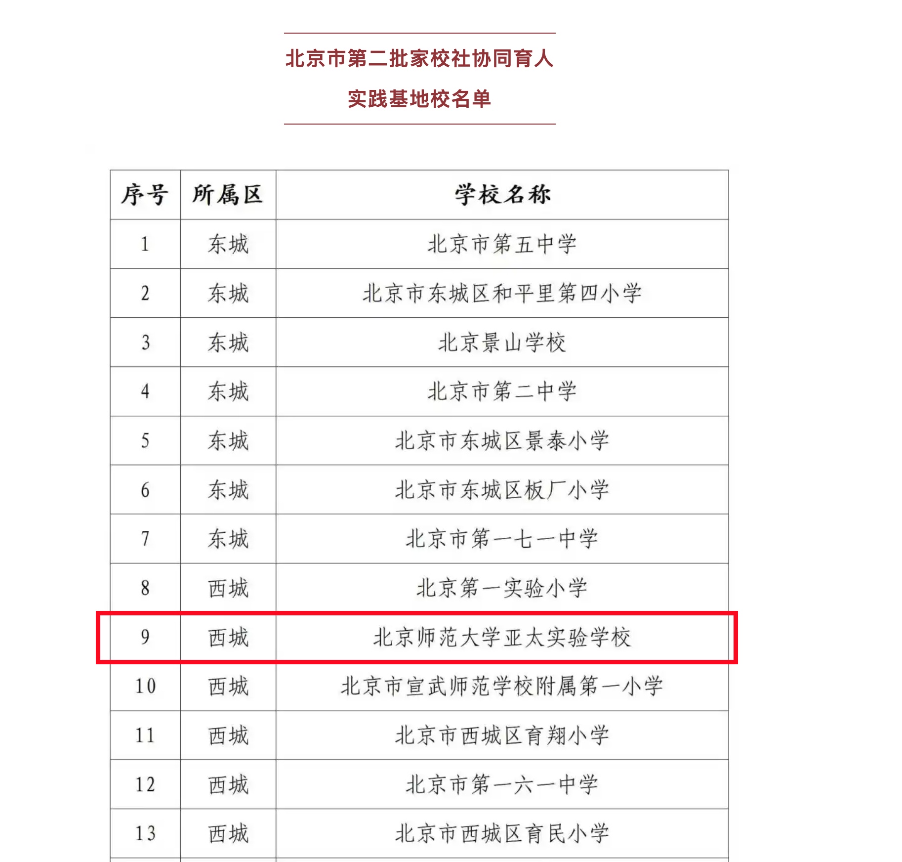此次遴选历经自主申报、区级评选、市级评审等多环节严格筛选,最终确定 50 所学校为第二批实践基地校,北京市第五中学等名校均在列。我校凭借在构建家校社协同育人体系中的扎实实践与突出成效,成功入选,成为区域家校社协同育人工作的重要实践阵地。